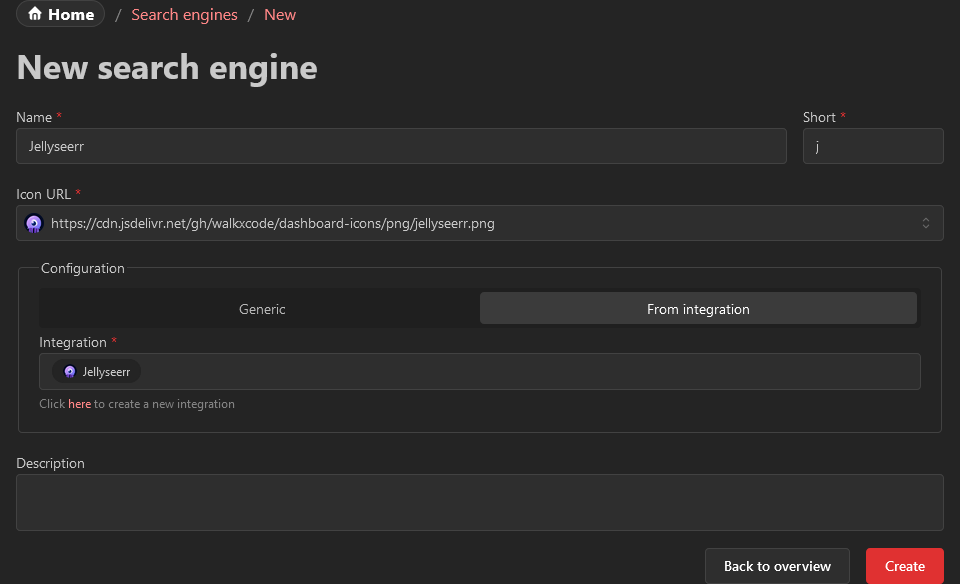 The Overseerr / Jellyseerr integration will enable you to request movies and series directly from your Homarr dashboard. Both integrations use the search engine feature of Homarr and require some additional configuration.